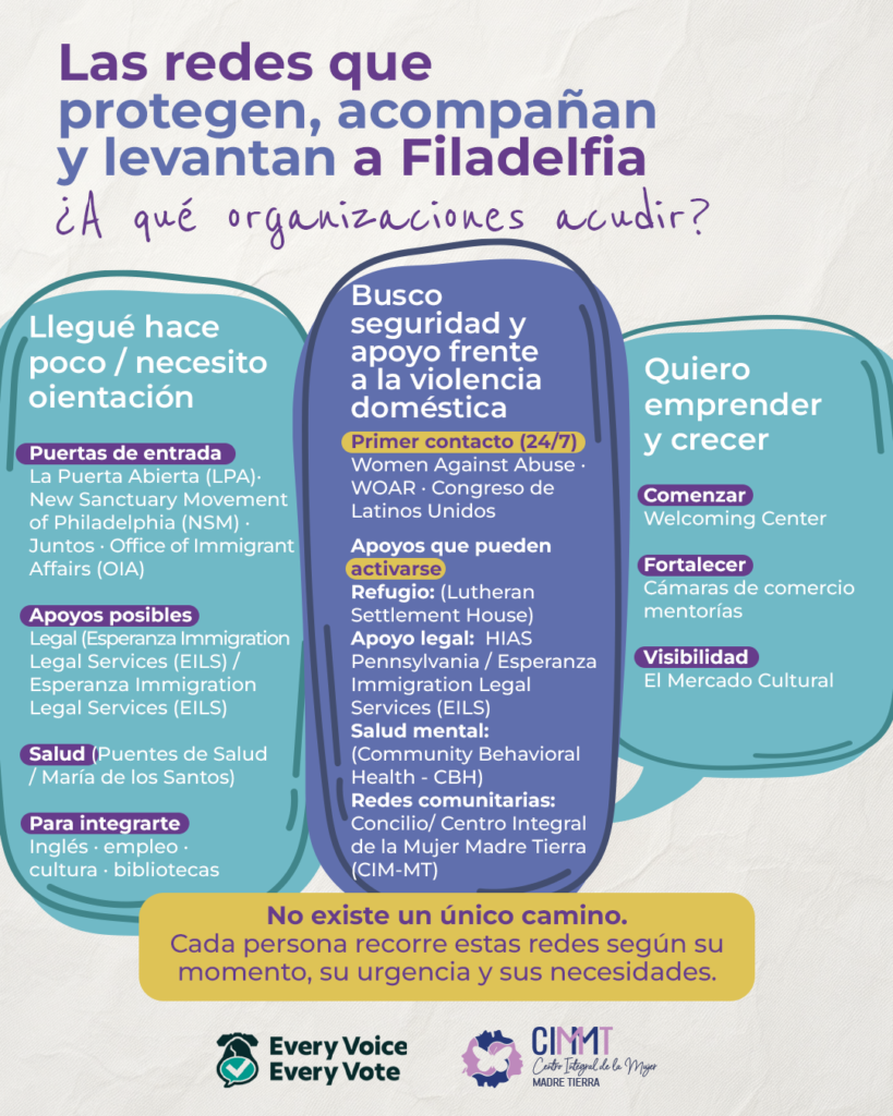 En Filadelfia, participar no es un trámite: es una manera de construir ciudad. Cada clase de inglés, cada consulta médica, cada taller de derechos y cada círculo de apoyo fortalece un ecosistema comunitario amplio, diverso y profundamente conectado.